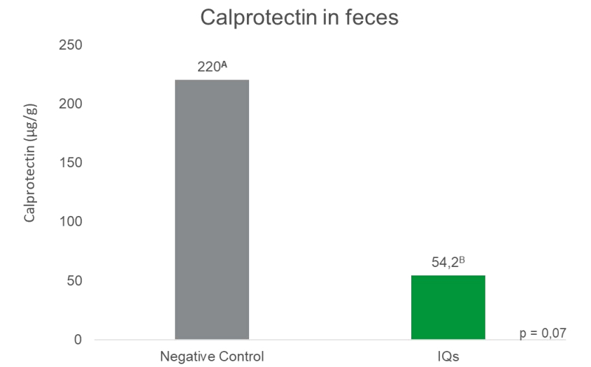 In a field trial conducted at a commercial farm in Spain, we assessed the impact of a standardized blend of IQs (Sangrovit®) on specific biomarkers known for their association with inflammation and stress. The trial involved 1,200 Piétrain piglets, with 600 in the control group and 600 in the treatment group, all aged 35 days and lasting for 28 days. Two sampling timepoints were established: 5-7 days after the trial began and 0- 2 days before its completion. Key parameters evaluated included inflammation markers such as calprotectin and myeloperoxidase (MPO), as well as the stress marker cortisol.