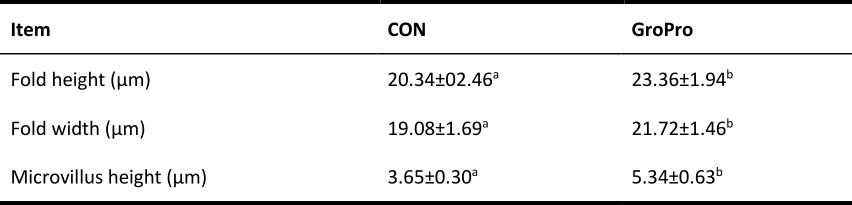 Tab.1. Effect of GroPro supplementation on intestinal morphology of Litopenaeus vannamei