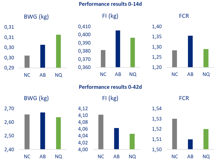 Performance results at 14 days and then 42 days were well in line with previous experimentations and showed that the micro-encapsulation of phytogenics and phycogenics could provide similar or better performance compared to other treatments.