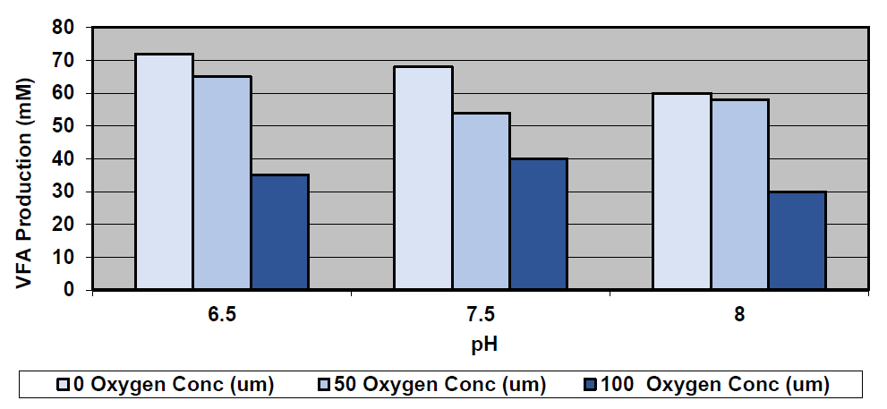 Figure 2. Volatile fatty acids (VFA) production at different pH levels (Vervaeke., 1973)