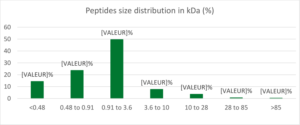 Figure 1. Peptide size distribution of Prosaf® showing a large proportion of small size peptides.