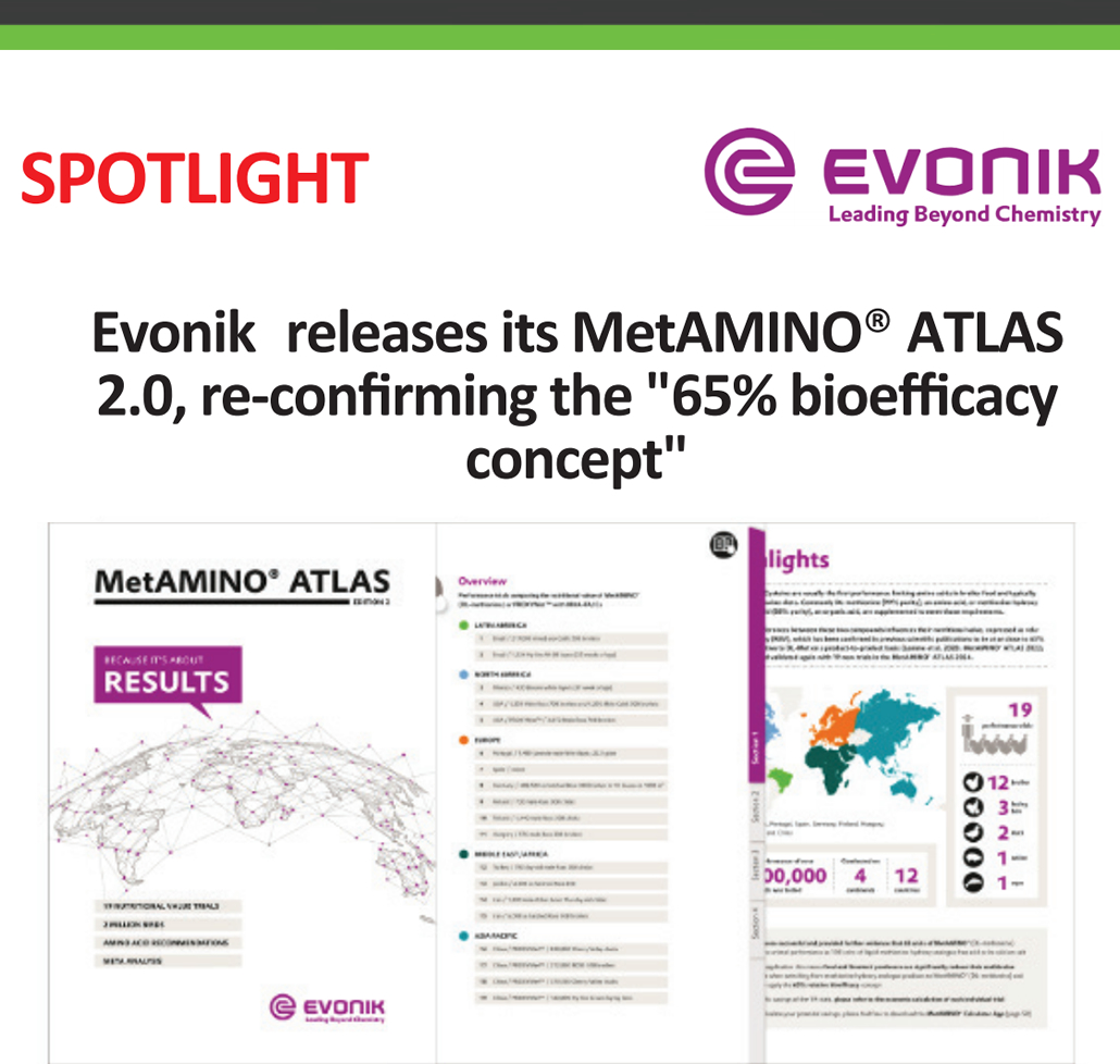 The release of the 2nd edition of the MetAMINO® ATLAS was necessitated by the emergence of new scientific studies on methionine bioavailability, including three review articles featuring meta-analyses on methionine sources in broiler and turkey nutrition, amino acid recommendations, and the latest developments on the sustainability aspects of MetAMINO® (Carbon Footprint on page 140). This edition reflects Evonik's commitment to providing the most current and scientifically robust information to support the animal nutrition industry's move towards more sustainable and cost-effective practices.