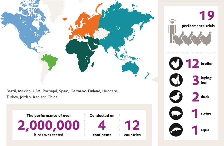 The 2nd edition of the MetAMINO® ATLAS showcases 19 new nutritional value trials in 12 countries on 4 continents with more than 2 million animals. Trials were conducted under experimental settings in small scale pen research facilities and under practical conditions at large scale commercial farms.