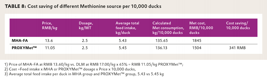 Evonik confirms that 65 units of MetAMINO® achieve comparable performance to 100 units of MHA-FA or MHA-Ca, under any nutritional settings, any production conditions and at any time, while allowing for significant saving when using DL-methionine.