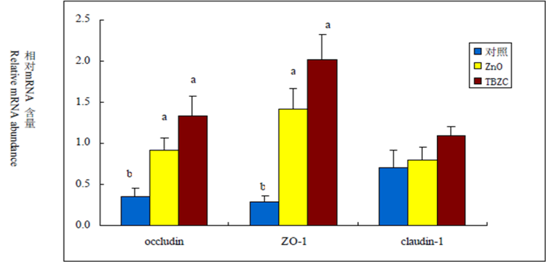 The experiment conducted in China Agricultural University by Dr. Zhang Bingkun showed that basic zinc chloride (BZC) promoted the mRNA expression of tight junction proteins in the intestinal epithelial cells and increase the tight junction of epithelial cells.