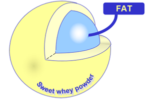 The fat in Bigolac is produced using spray-drying with sweet whey powder. This creates very small fat particles encapsulated in a protein layer, or in other words fat-filled whey. The main advantage of this is the small fat particles being more easily digestible to compensate for the low lipase production. And the fats are emulsified to compensate for the piglets' bile production. These characteristics, together with highly digestible protein and lactose, makes Bigolac a product of choice for young piglet diets to support gut health and premium pig performance.