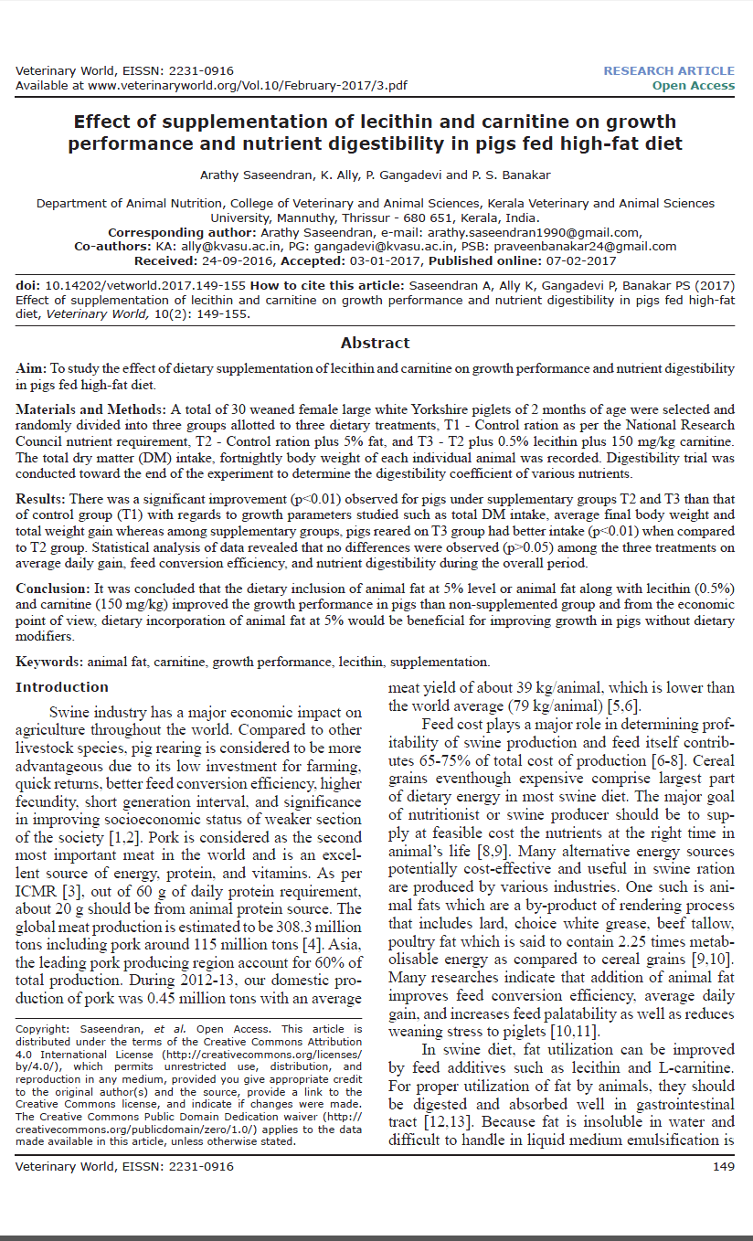 Article made possible through the contribution of A. Saseendran et al. and Kerala Veterinary and Animal Sciences University